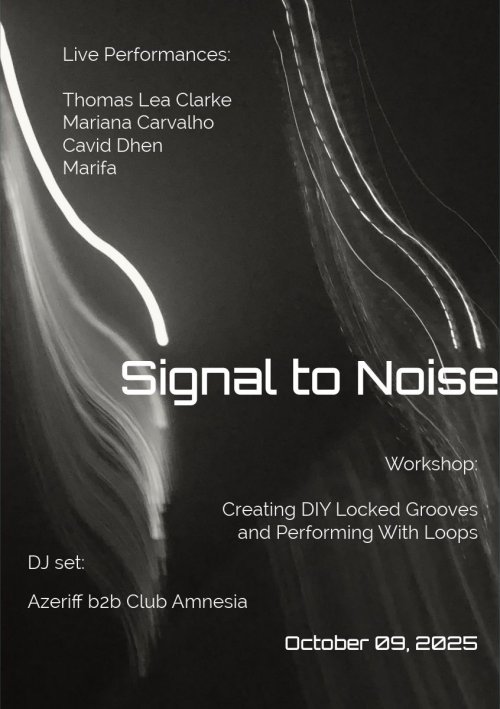Live performances by Marifa, Mariana Carvalho, Cavid Dhen, and Thomas Lea Clarke then present a range of experimental practices from electro-acoustic performance, expanded instrumental techniques, noise processing and club-oriented experimentation.